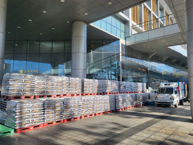 기부물품 전달 행사는 금천구청 앞마당에서 진행하였습니다.